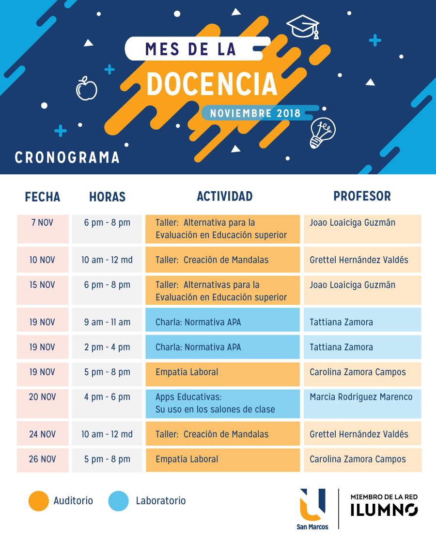 Este mes de noviembre comenzamos con actividades especiales, por la celebración del 22 de noviembre Día del Educador Costarricense. El Mes de la Docencia tendrá toda una serie de talleres, charlas y actividades para los interesados en aplicar sus conocimientos dentro de la carrera de Docencia.